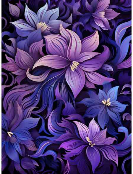 Алмазная мозаика без подрамника «Пурпурные цветочки» 130x100 см, 50 цветов
