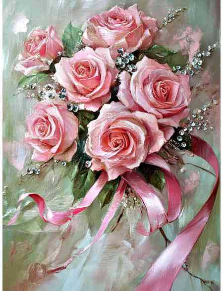 Алмазная мозаика без подрамника «Розовый букет» 90x70 см