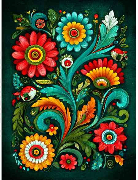 Алмазная мозаика без подрамника «Цветочный узор» 70x50 см