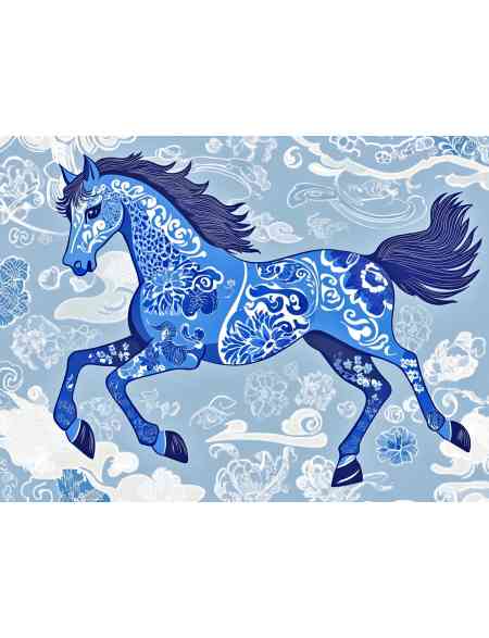 Алмазная мозаика без подрамника «Гжель лошадка» 130x100 см