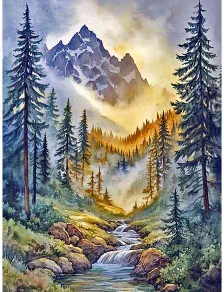Алмазная мозаика без подрамника «Горный ручей» 35x25 см