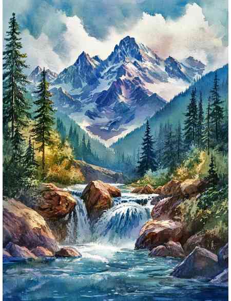 Алмазная мозаика без подрамника «Горный ручей» 90x70 см