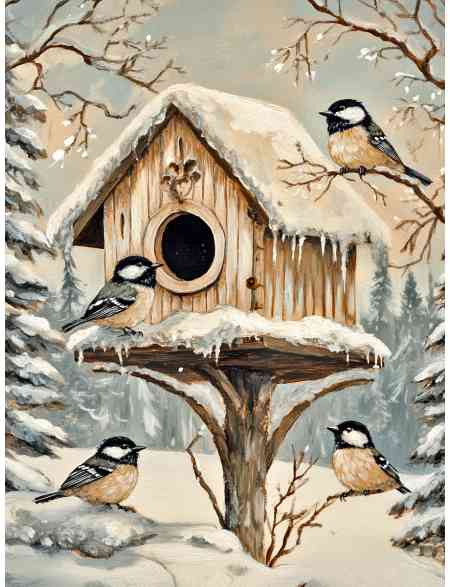 Алмазная мозаика на подрамнике «Синички» 90x70 см