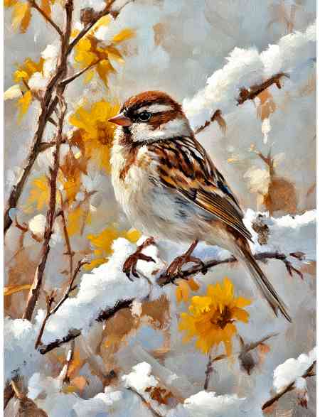 Алмазная мозаика без подрамника «Воробушек» 90x70 см