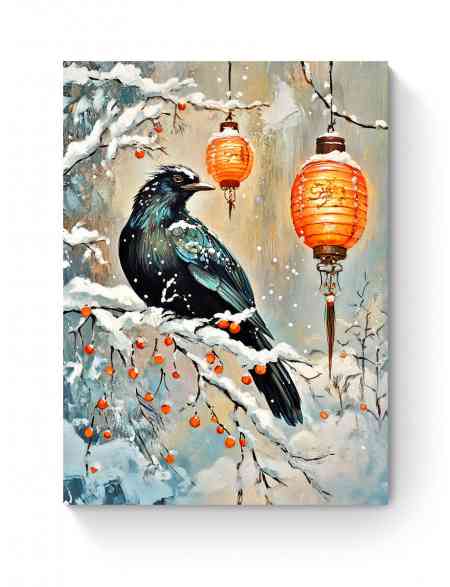 Алмазная мозаика на подрамнике «Ворон на ветке» 90x70 см