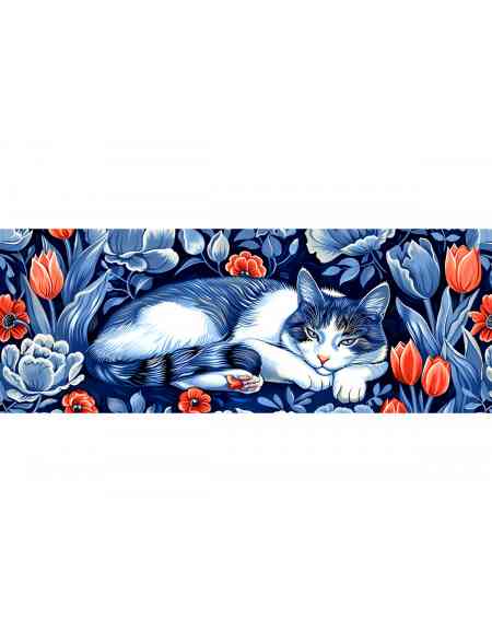 Алмазная мозаика без подрамника «Кот гжель» 100x35 см
