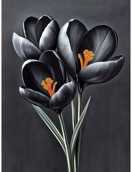 Алмазная мозаика без подрамника «Черные цветы» 130x100 см