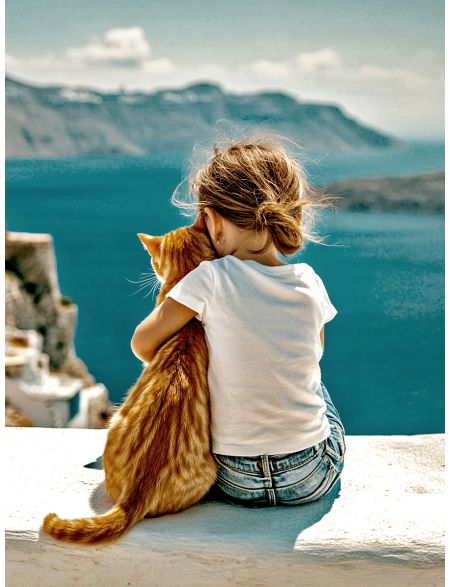 Алмазная мозаика без подрамника «Девочка и кот» 130x100 см