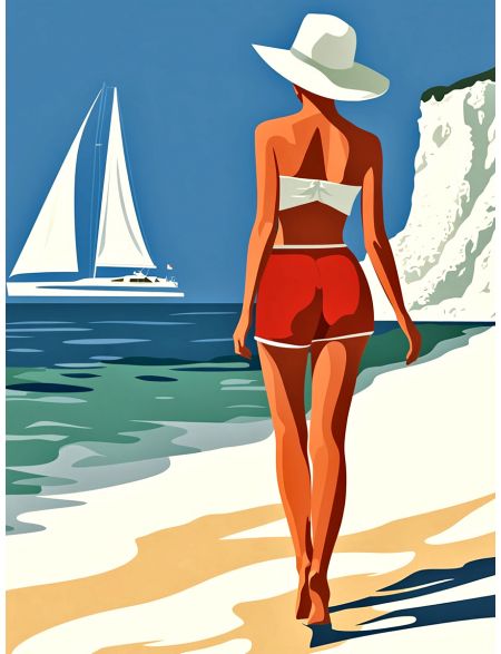Алмазная мозаика без подрамника «Девушка на море» 130x100 см