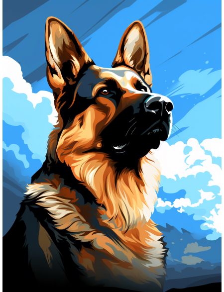 Алмазная мозаика без подрамника «Немецкая овчарка» 130x100 см, 37 цветов