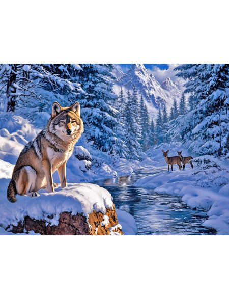 Алмазная мозаика без подрамника «Волк в лесу» 130x100 см, 50 цветов