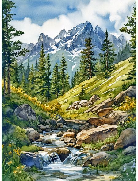 Алмазная мозаика без подрамника «Горная речка» 130x100 см