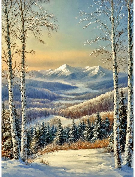 Алмазная мозаика без подрамника «Зима в горах» 130x100 см