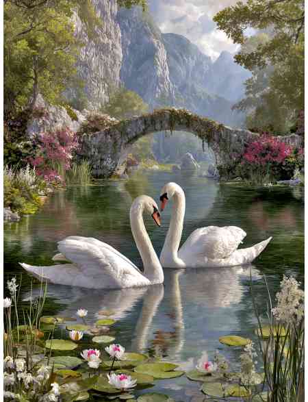 Алмазная мозаика без подрамника «Лебеди на озере» 40x30 см
