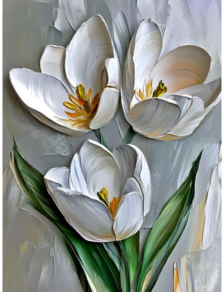 Алмазная мозаика без подрамника «Белые тюльпаны» 90x70 см
