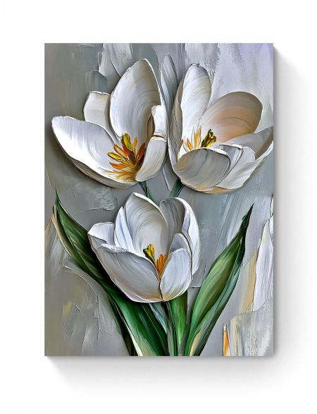 Алмазная мозаика на подрамнике «Белые тюльпаны» 50x40 см