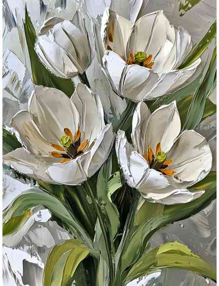 Алмазная мозаика без подрамника «Белые тюльпаны» 50x40 см