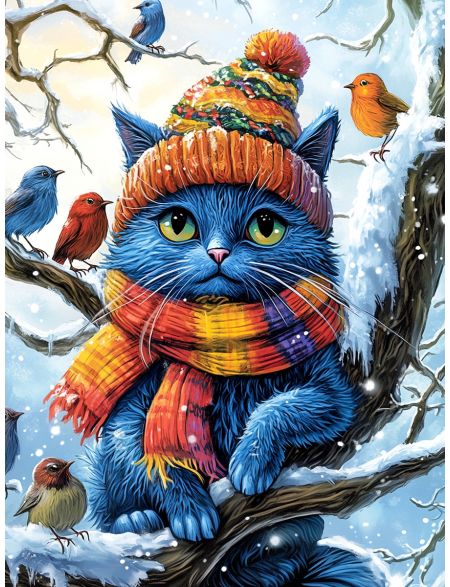 Алмазная мозаика без подрамника «Кот на дереве» 90x70 см