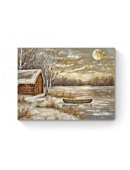 Алмазная мозаика без подрамника «Зимняя сторожка» 130x100 см
