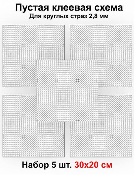 Клеевая схема для алмазной мозаики 30x20 см, 2.8 мм круглые стразы. Набор из 5 штук