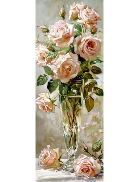 Алмазная мозаика без подрамника «Розы в вазе» 40x30 см, 30 цветов