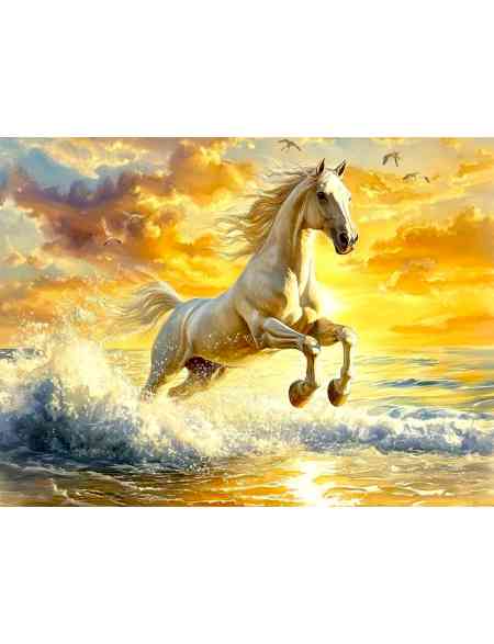 Алмазная мозаика без подрамника «Гжель лошадка» 130x100 см