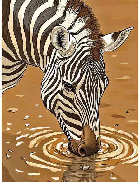 Алмазная мозаика без подрамника «Зебра у воды» 130x100 см