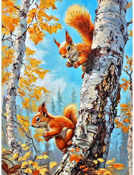 Алмазная мозаика без подрамника «Белки на дереве» 130x100 см