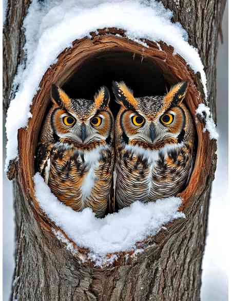Алмазная мозаика без подрамника «Совы в дупле» 130x100 см