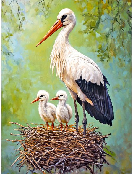 Алмазная мозаика без подрамника «Аисты в гнезде» 130x100 см