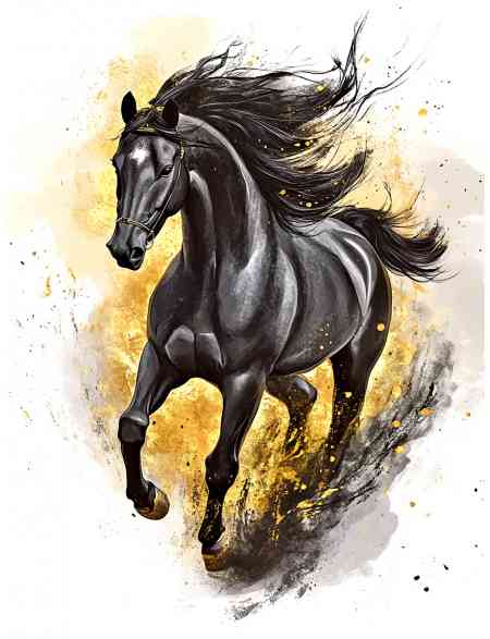 Алмазная мозаика без подрамника «Черный конь» 130x100 см