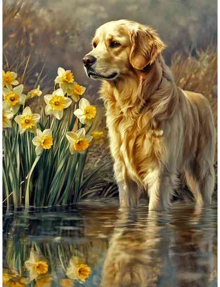 Алмазная мозаика без подрамника «Голден ретривер» 40x30 см