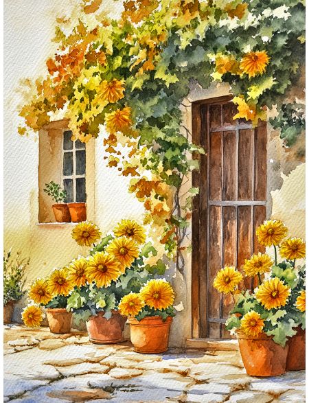 Алмазная мозаика без подрамника «Цветочный двор» 35x25 см