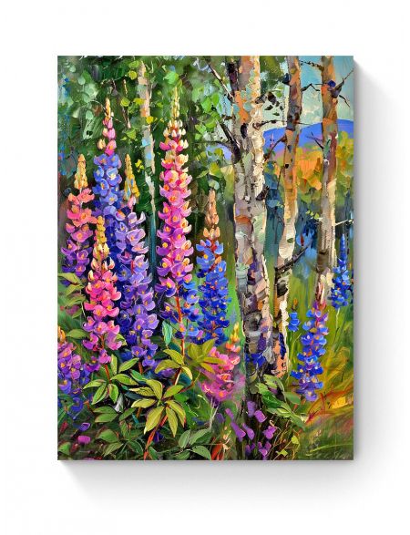 Алмазная мозаика на подрамнике «Люпины в лесу» 50x40 см