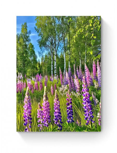 Алмазная мозаика без подрамника «Люпины в лесу» 130x100 см