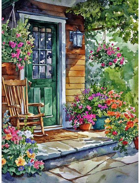 Алмазная мозаика без подрамника «Цветочный двор» 35x25 см