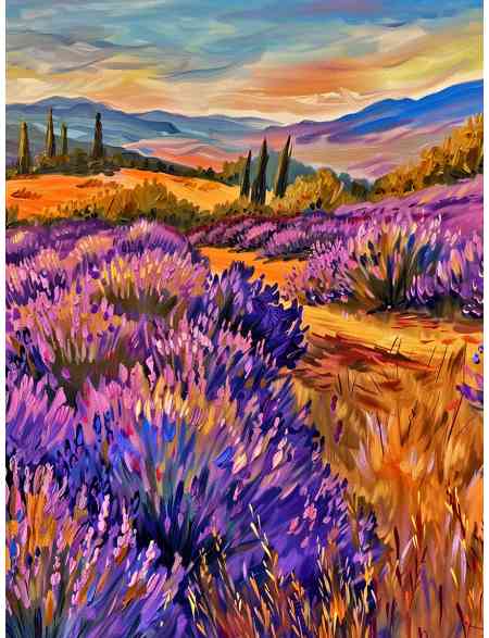 Алмазная мозаика без подрамника «Лавандовое поле» 90x70 см