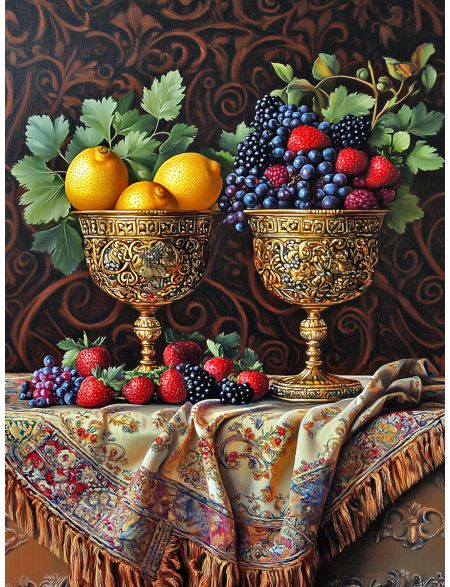 Алмазная мозаика без подрамника «Фрукты в кубках» 70x50 см