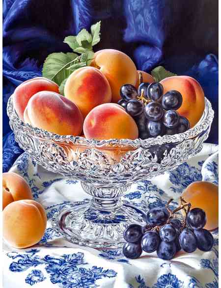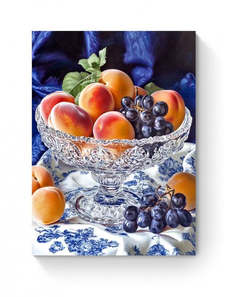 Алмазная мозаика на подрамнике «Персики в вазе» 90x70 см