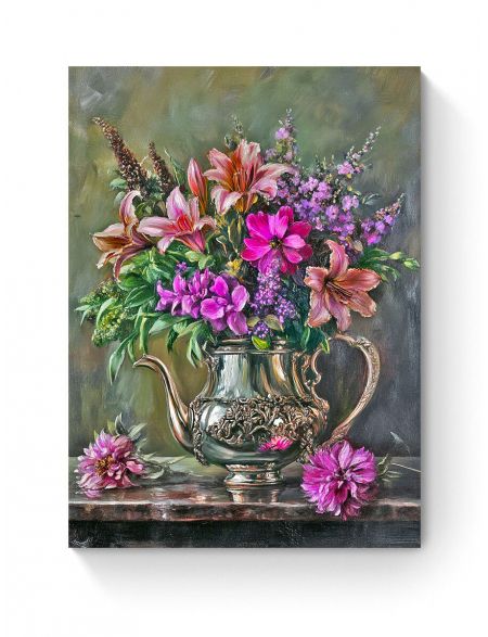 Алмазная мозаика на подрамнике «Кувшин цветов» 80x60 см