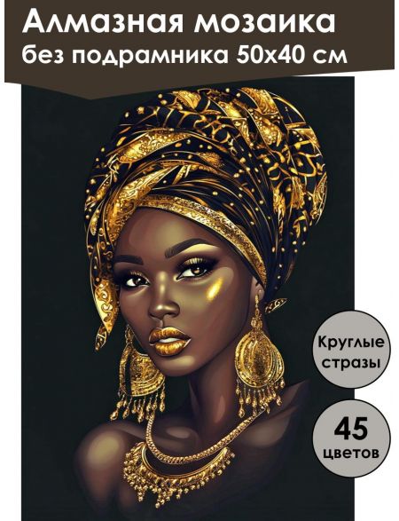 Алмазная мозаика без подрамника «Афроамериканка» 50x40 см