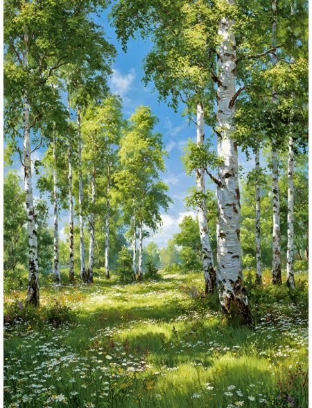 Алмазная мозаика без подрамника «Березы в русском поле» 90x70 см, 30 цветов