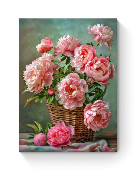 Алмазная мозаика на подрамнике «Корзина пионов» 40x30 см, 50 цветов