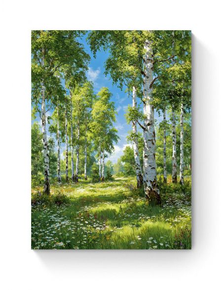 Алмазная мозаика на подрамнике «Берёзовая роща» 50x40 см, 50 цветов