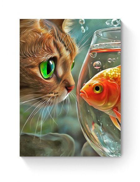 Алмазная мозаика на подрамнике «Кот и рыбка» 40x30 см, 50 цветов