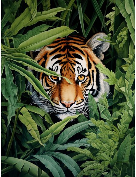 Алмазная мозаика на подрамнике «Тигр в засаде» 50x40 см, 50 цветов