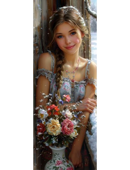 Алмазная мозаика на подрамнике «Девушка с цветами» 90x30 см, 46 цветов