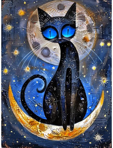 Алмазная мозаика без подрамника «Лунный кот» 35x25 см