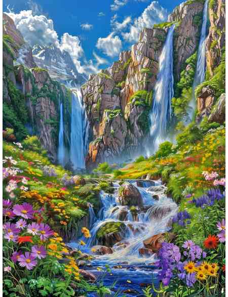 Алмазная мозаика без подрамника «Цветы и водопад» 70x50 см