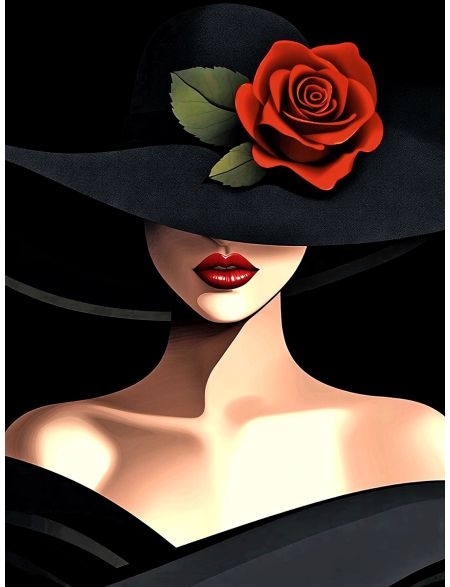 Алмазная мозаика без подрамника «Дама в шляпе» 25x20 см